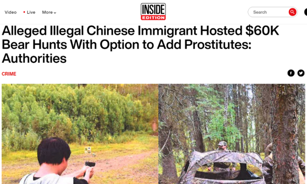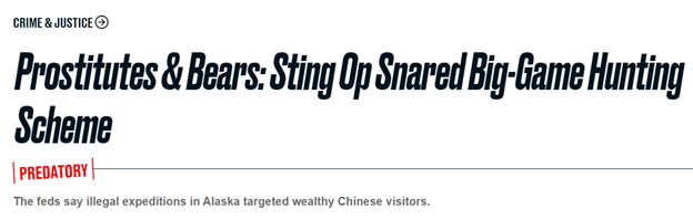 “似乎只向中国公民或居住在美国的中国公民推销他的服务”。猎熊?狩猎大型野生动物?这些关键字眼一下就扎进了WIU的心里。于是乎,WIU立即就开始了调查,并顺手联系了美国鱼类和野生动物管理局(FWS)。