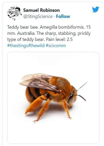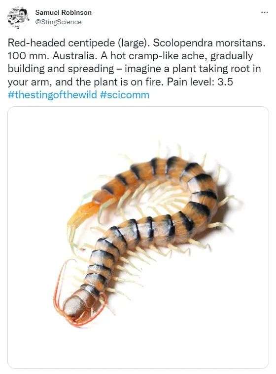 当然了,作为专家,Sam怎么可能拿自己年轻帅气的生命作死——他会首先排除那些已知的剧毒生物,保住自己的小命,然后应用“施密特疼痛量表”来描述刺痛或咬伤引起的疼痛