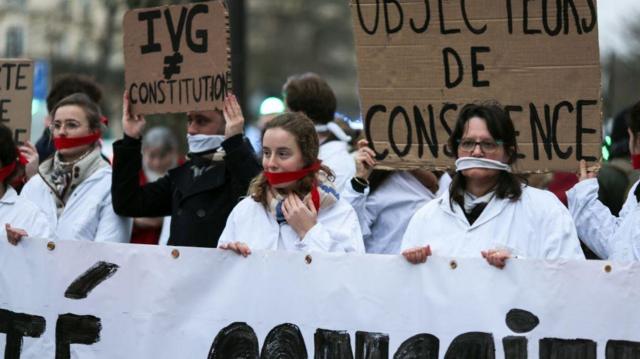 图像来源,GETTY IMAGES,一月份,法国议会下院以压倒性多数通过,将堕胎列为宪法中"受保障的自由",参议院也予以效仿。