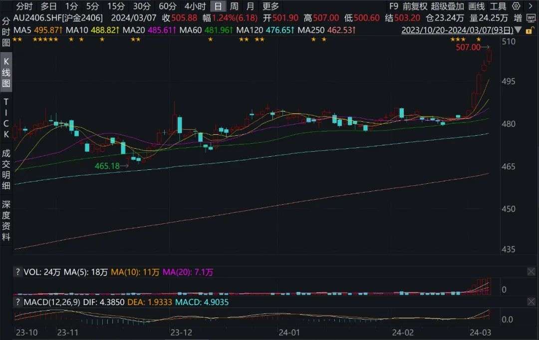 3月7日,国际国内现货、期货黄金纷纷创历史新高。