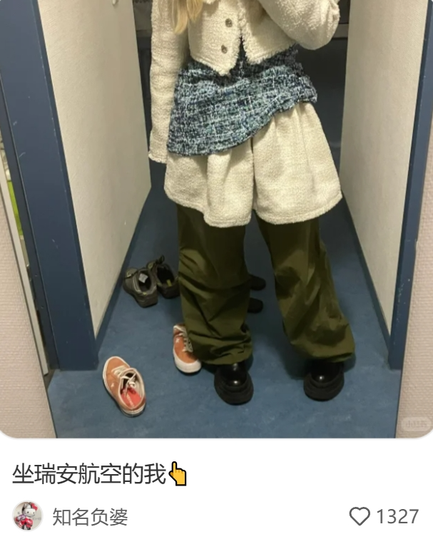 别担心会被同航班的人瞧不起,你穿着这一身顺利通过安检区,更大概率会收获廉航人投来的肯定眼神。