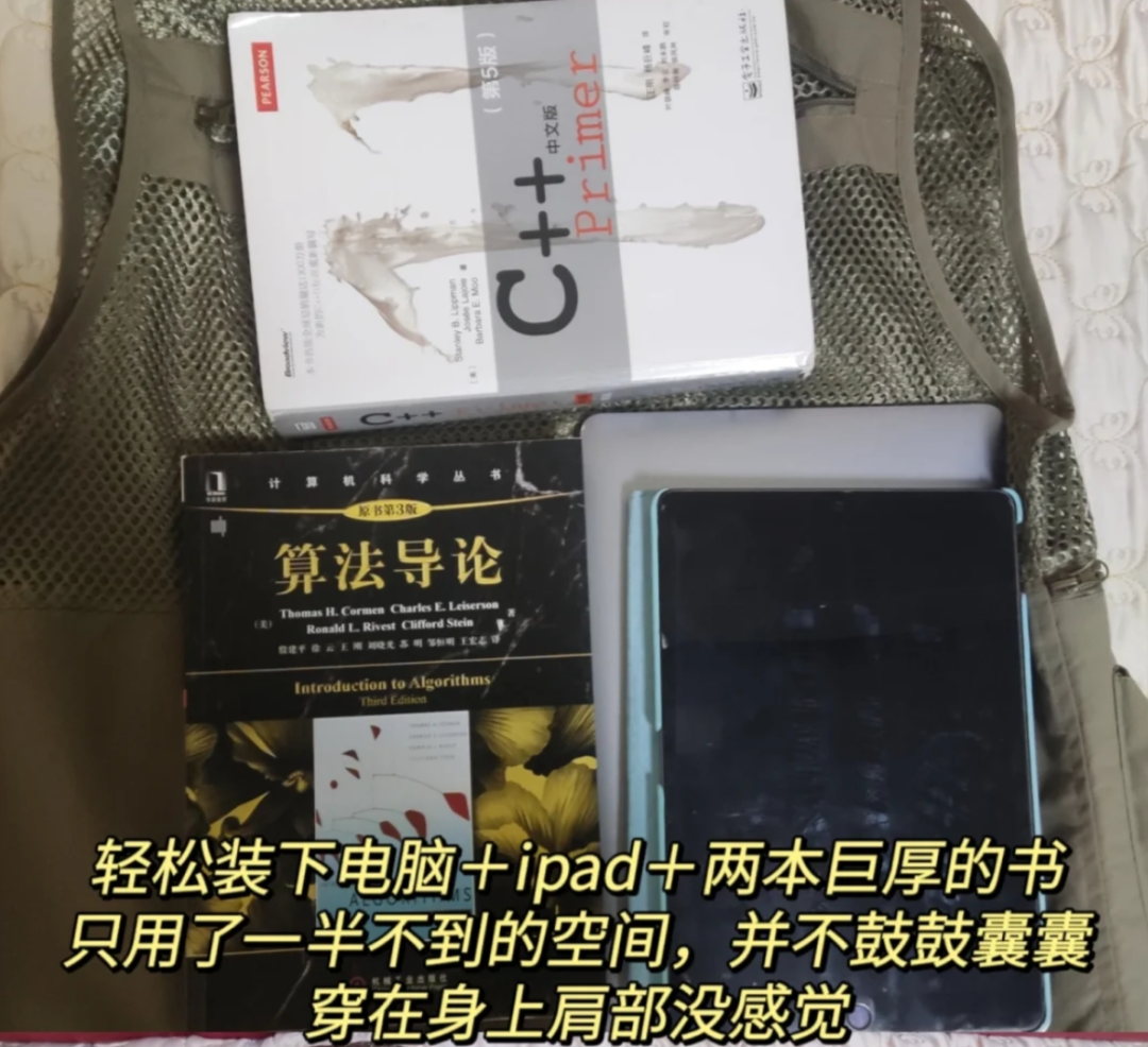 重点是背面的口袋,放下两本书与IPAD后都绰绰有余。