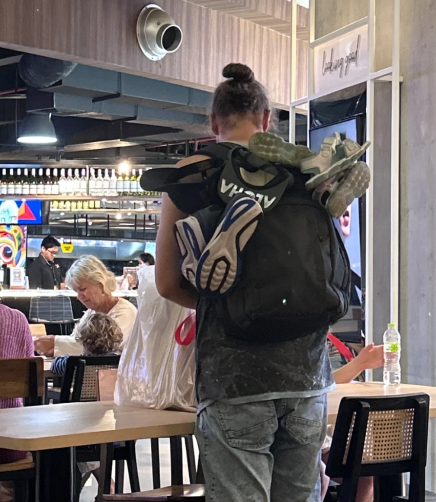 网友在外国遇见过一个老哥,背包上系了三双鞋子,原本已经尤为惊叹。