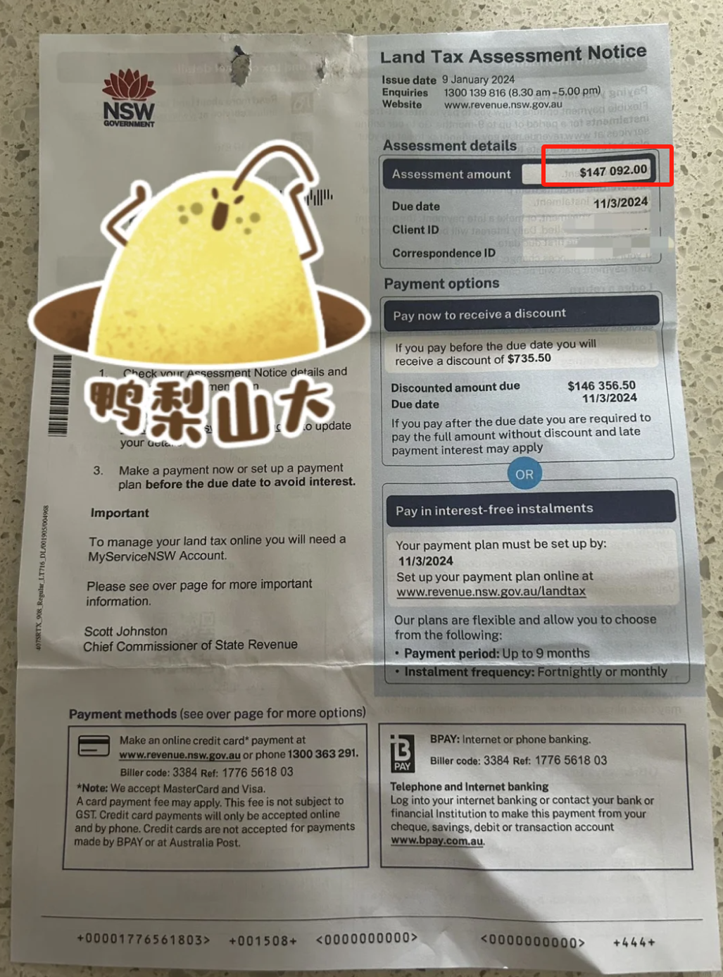 阿南表示,新州的土地附加税太高了。回国三周,“罚款”6万澳元,平均每天就要给新州税务局提供2857澳元的税务。