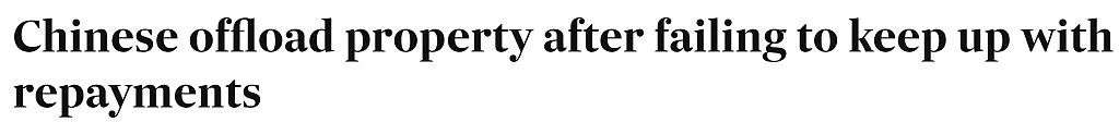 据悉,由于澳大利亚房市对海外投资者收取的费用越来越高,再加上中国买家资金外流越来越难,大批中国买家开始着手抛售澳洲房产,“因为他们无法偿还贷款。”