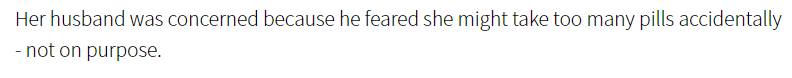而且她服用过量Panadol有可能仅仅是可能不小心吃了太多药片。