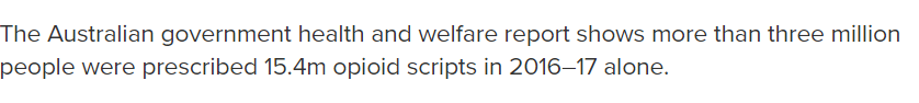 据澳大利亚政府的健康和福利报告显示,仅2016年至2017年,就有超过300万人服用了1540万种“鸦片类”药物。