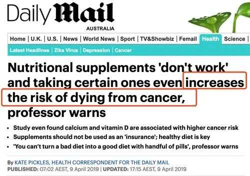 而且长期服用一些含有钙和维生素D的保健品,实际上会提高患癌风险。