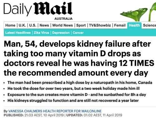 据悉,这名54岁的男子为了促进钙吸收、强身健体,在1个月内服用了大量的维生素D,还特意去度假——每天晒8小时的日光浴来促进维生素D吸收。