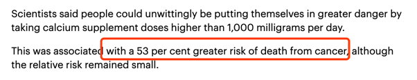 研究发现,尽管风险并不高,但是超量摄入补钙的保健品会增加53%的癌症死亡率!
