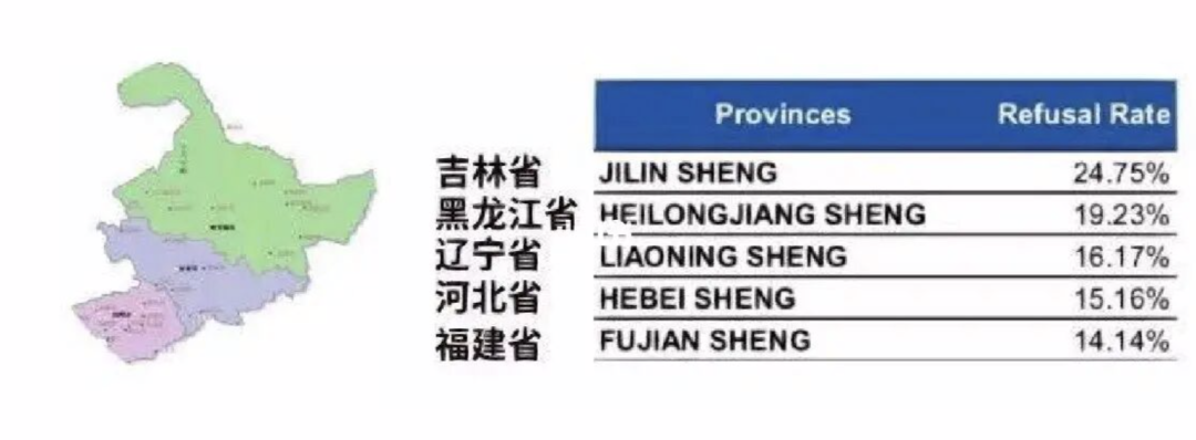 与其他省份相比,即使在申请材料完全一致的情况下,这些省份的申请者也可能面临直接拒签的风险。