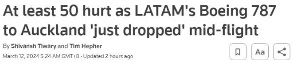 飞机所属的南美航空集团表示,这架波音787-9 Dreamliner客机存在技术问题,导致“剧烈晃动”。