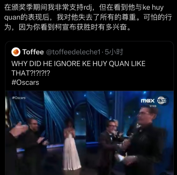 在这种世界顶级颁奖典礼上直接无视一位重要演员的情况,还是很少见的。而这种行为的“效果”当然也是很炸裂的,甚至让无数亚洲网友怒从心生。