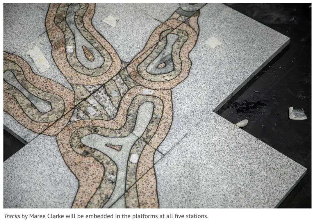 由著名艺术家Maree Clarke设计的由彩色花岗岩制成的超大动物脚印(包括考拉、蜜袋鼯、袋熊和鸸鹋),也都将印在新的火车站中。