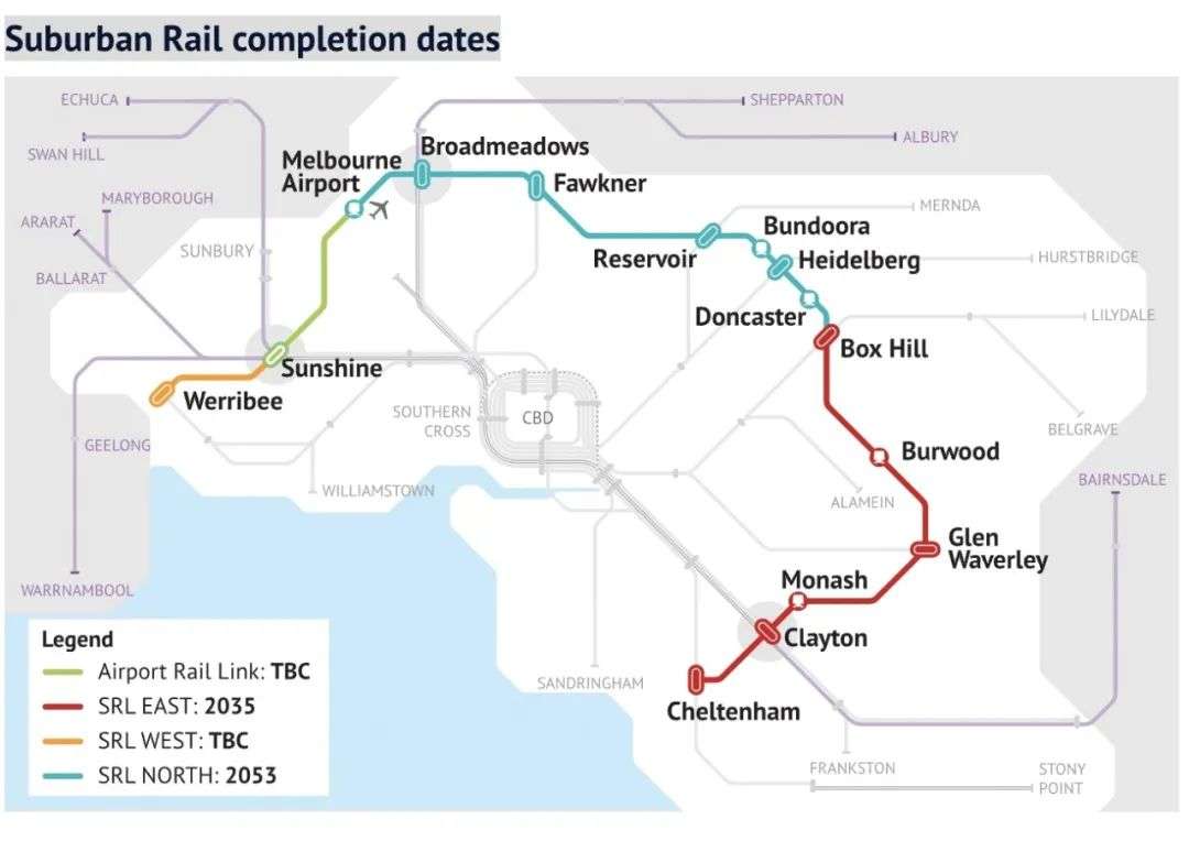 根据现在政府放出的信息,最快的我们Burwood和Monash在内的SRL EAST线,也是要等到2035年才能投入运营。