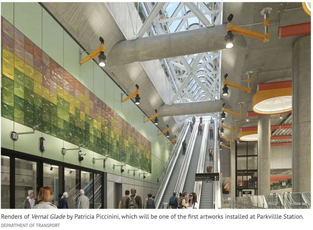 由国际知名艺术家Patricia Piccinini的《Vernal Glade》手工釉面瓷砖拼贴画将成为首批装进Parkville站的艺术品之一。