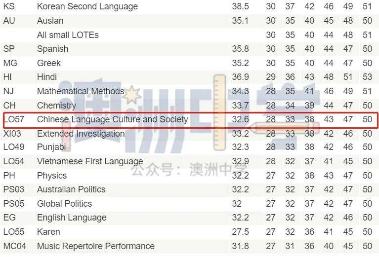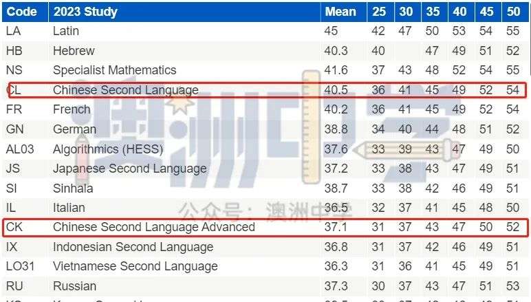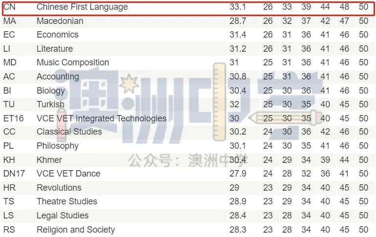而根据VTAC公布的2023年VCE scaling数据显示,中文一些科目都获得加分,甚至在满分50的情况下得到54。
