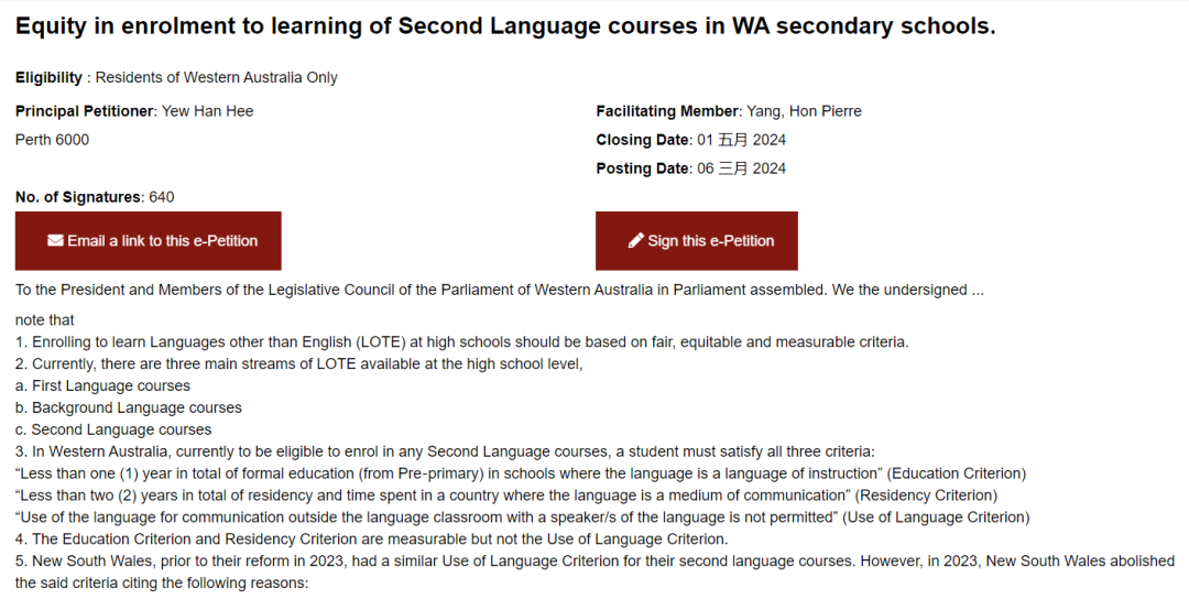 点击进入西澳州议会请愿链接((选择 “Sign this e-Petition)链接如下所示: