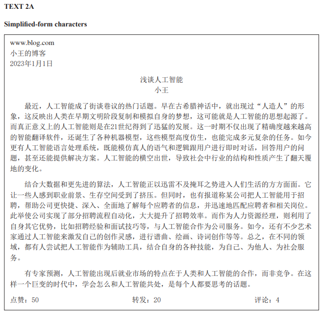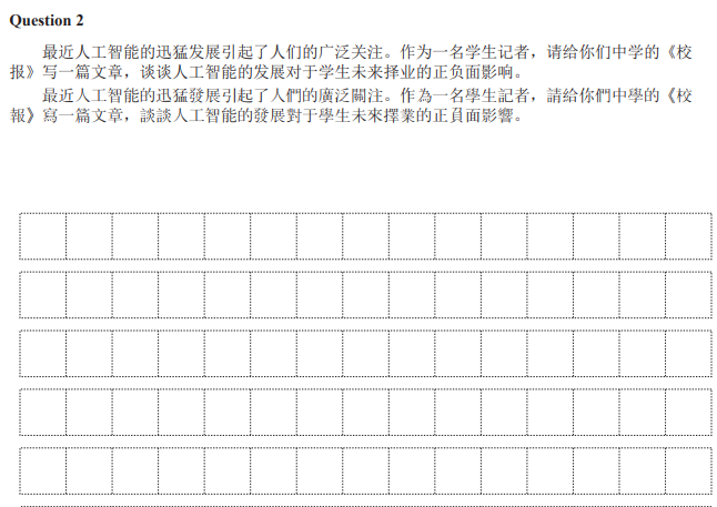 以VCE 2023年中文笔试试卷为例,让各位感受一下不同中文课程的中文难易程度。