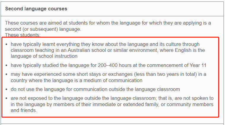 Year7 – Year10期间学习中文课程满200-400小时,且在以中文为教学语言的学校接受正规教育不超过1年;
