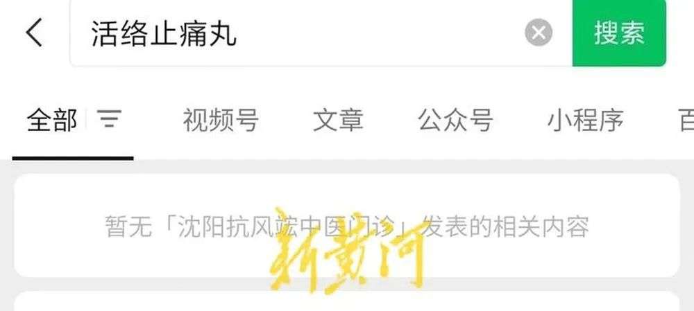 值得注意的是,此前,沈阳抗风竤中医门诊的微信公众号曾大量介绍该制剂的相关信息。但在14日下午,记者登录该公众号并以“活络止痛”为关键词进行搜索时,发现已无相关内容显示。