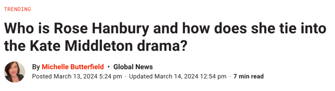 Global News 这两天更是专门围绕着 Rose 写了一篇报道。多年来,一些八卦小报一直猜测她是威廉王子的情妇(尽管这一点从未得到证实)。