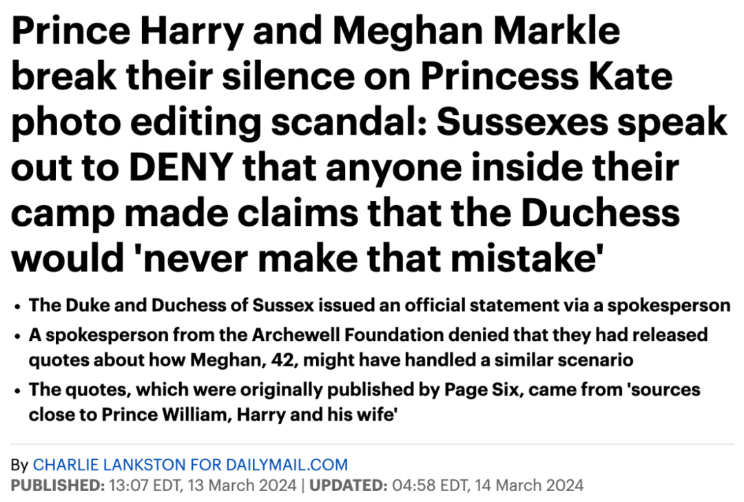 昨天,就连哈里王子夫妇也打破了沉默,通过官方发言人隐隐约约提到了凯特的P图事件。