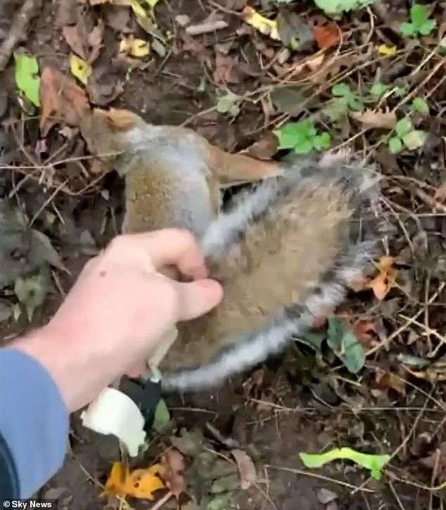 一个小学生还拍摄被自己击中正大量流血的松鼠。