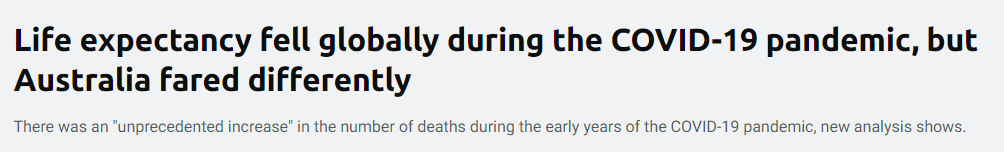 最新研究,新冠疫情导致全球平均预期寿命下降,但是,这个数据不适用澳洲,澳洲平均预期寿命不仅没有降,反而有所增长!