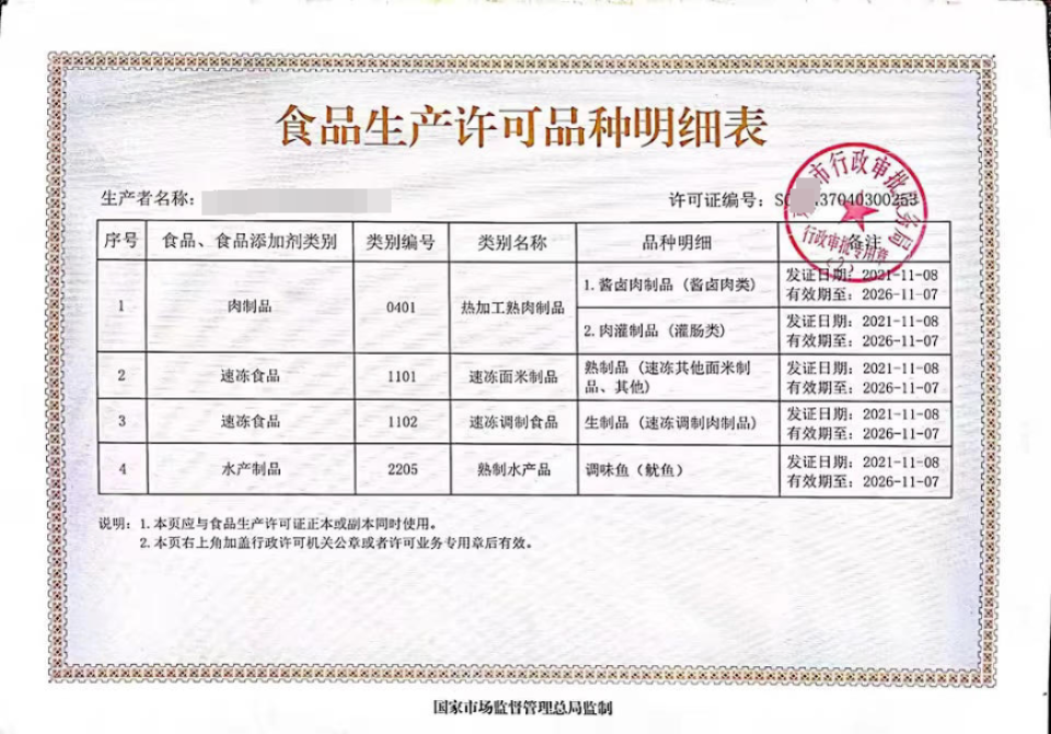 淀粉肠生产厂家的食品认证合格书(商家提供)