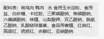 淀粉肠的配料表(商家提供)