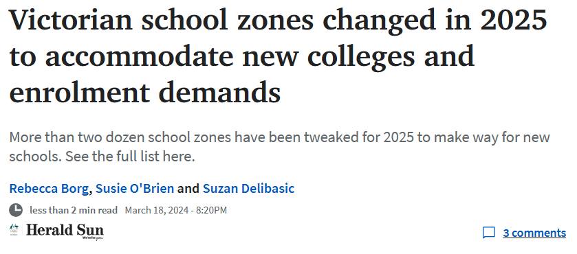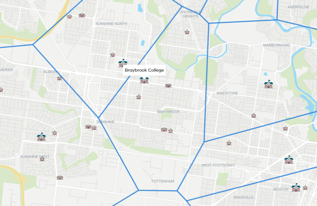 还有三所学校的学区被重新划分,以改善当地交通,包括 Sunshine College、Ferntree Gully North Primary 和 Glenroy West。