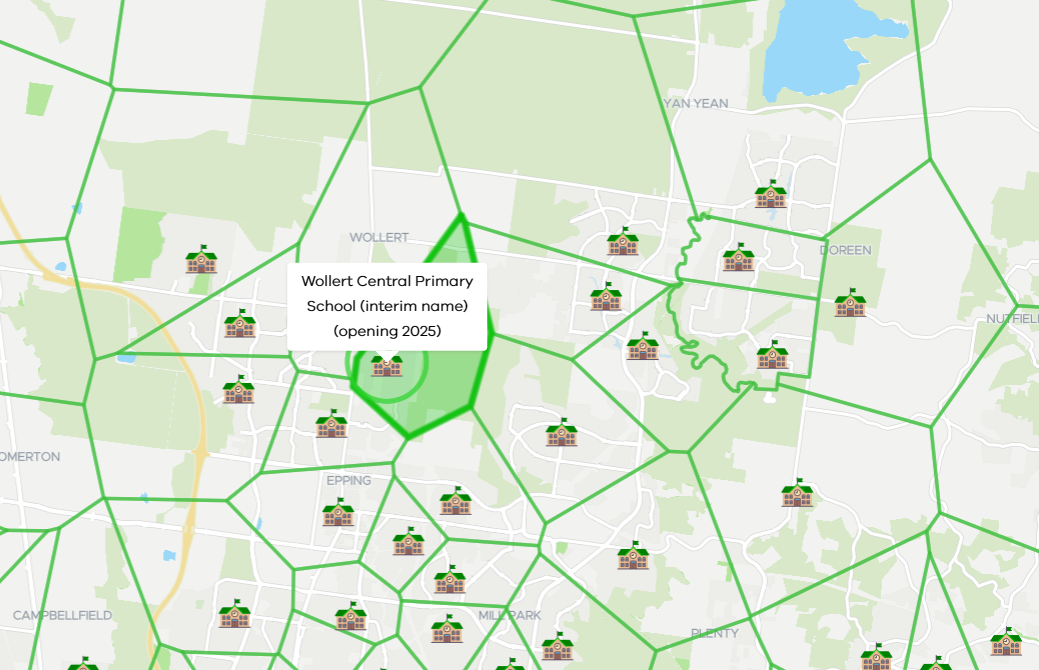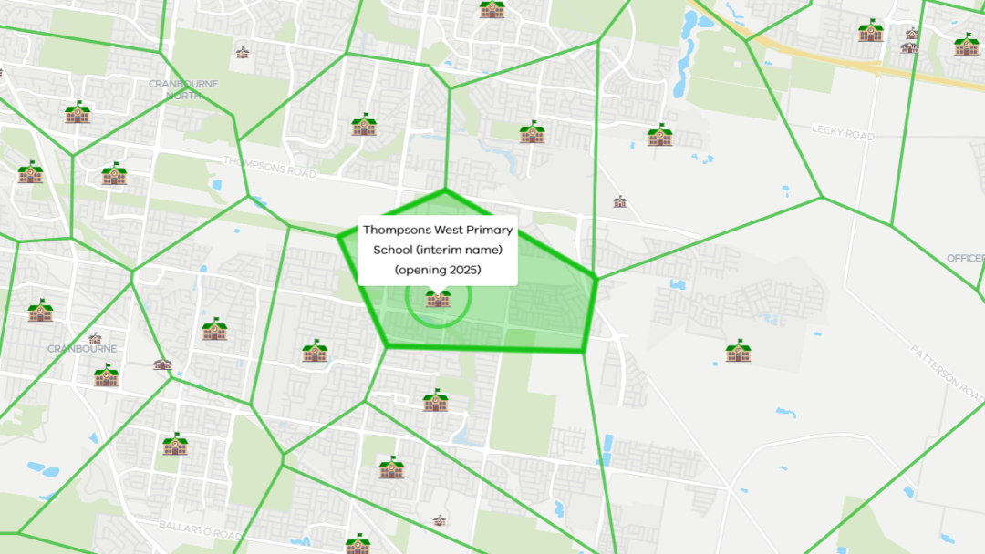 到2025年,在Pakenham西北部、Riverdale北部、Thompsons西部和Wollert中部将会开设新的小学,以减轻周边学区压力。