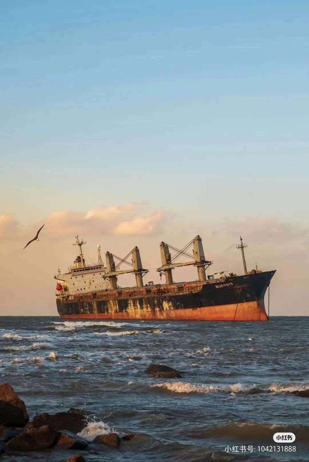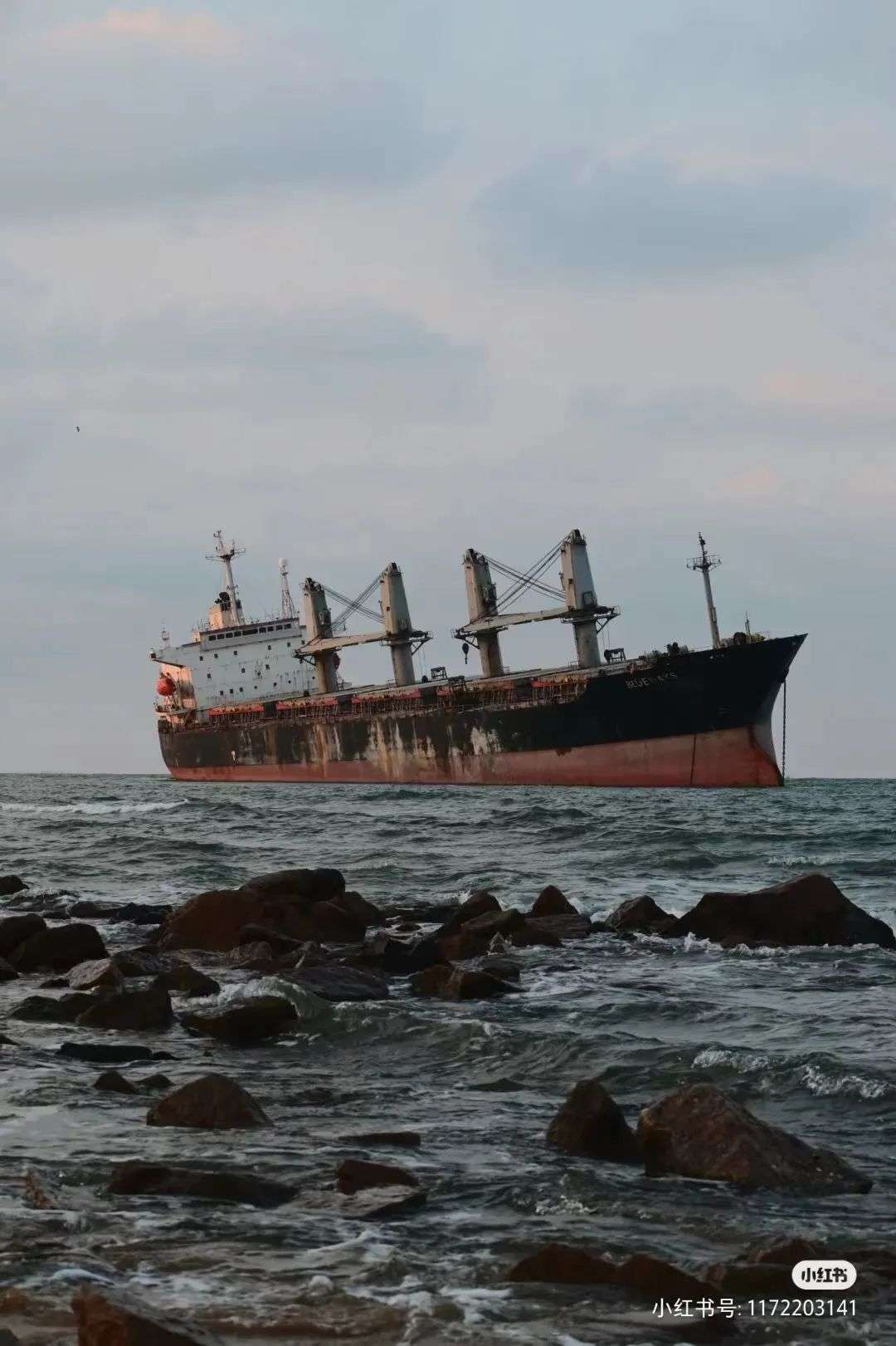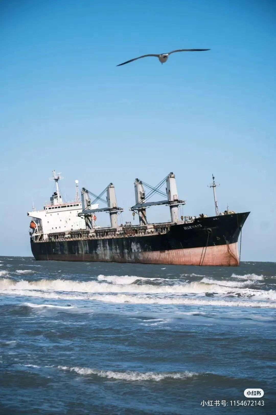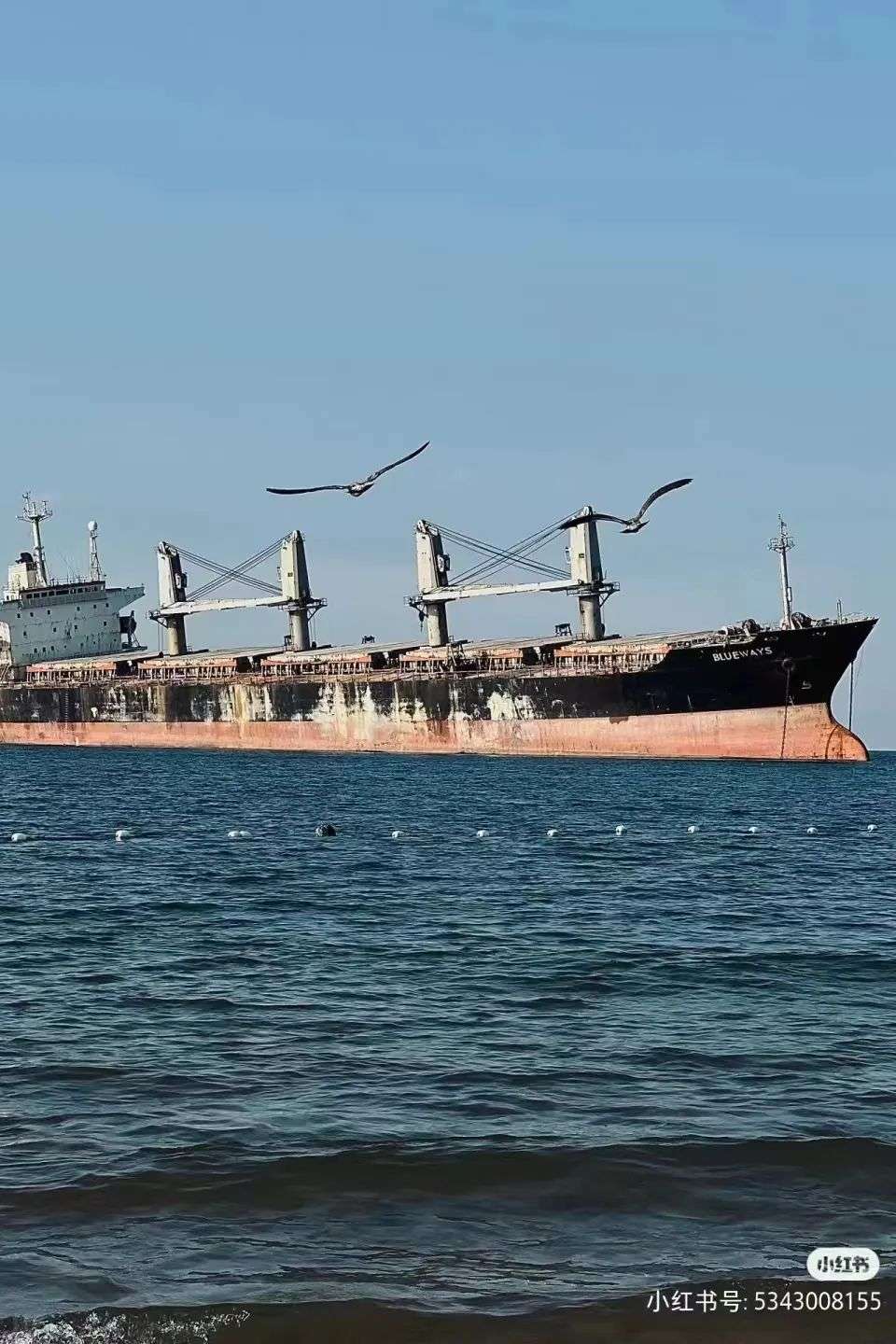 这艘船不是某个海边的游乐园,也不是豪华客轮,这只是搁浅在山东威海荣成附近的一艘货轮布鲁维斯号(blueways)。