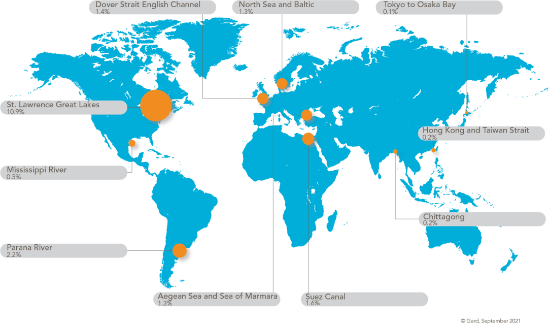 全球排名前十的船舶搁浅区域(图片来源:信德海事)