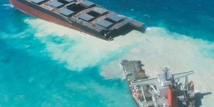 2020年,日本货轮“Wakashio”号在毛里求斯附近海域搁浅,并造成了严重的燃油泄露事故(图片来源:Greenpeace Africa)