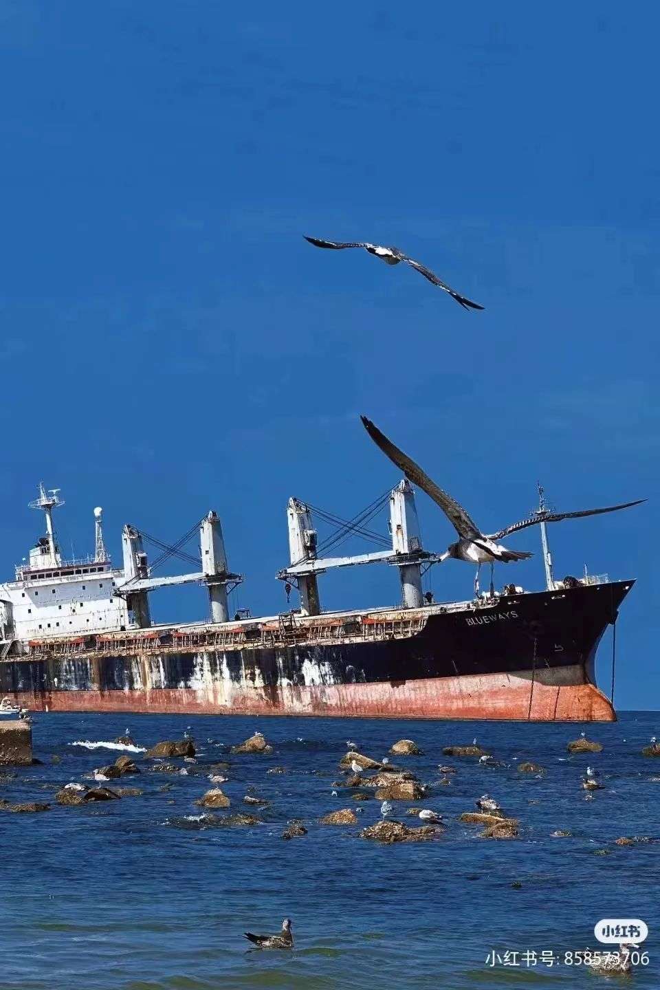 收藏山东威海搁浅货轮成网红打卡地,当一艘船搁浅之后,灾难或许才刚刚开始
