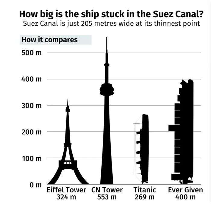 长赐轮的长度甚至超过了埃菲尔铁塔的高度(图片来源:CBC)