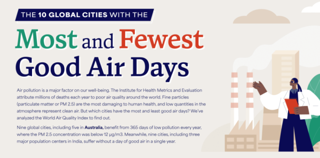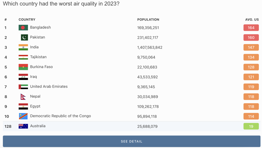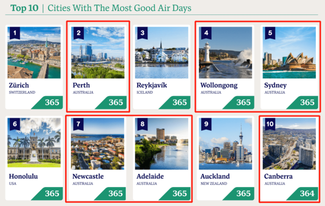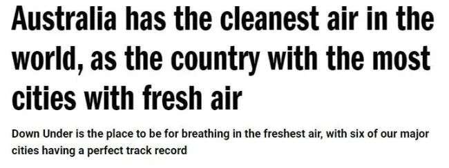 早在2023年10月,最新公布的全球空气质量排名中,HouseFresh通过分析世界空气质量指数的污染数据,在世界空气质量排名前10的城市中,澳洲占6席!