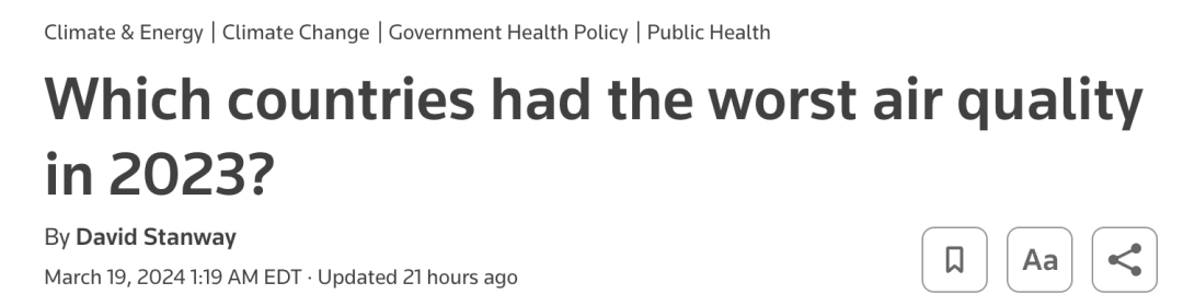 刚刚!瑞士空气净化信息公司(IQAir)推出《2023年世界空气质量报告》(2023 World Air Quality Report),数据在全球各国引起热议!