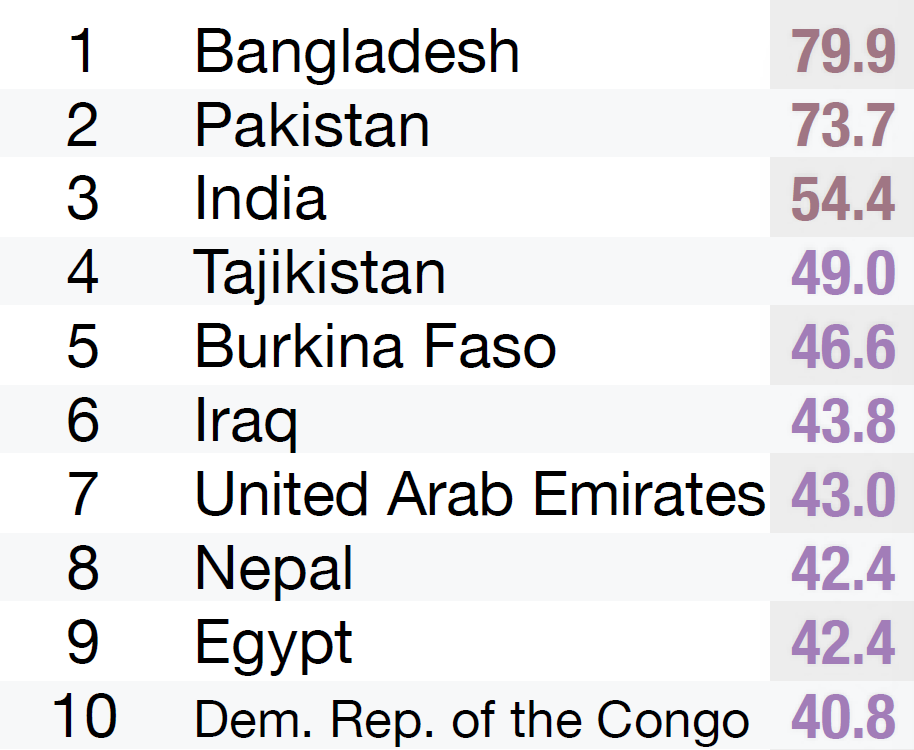 这份年度报告是基于134个国家和地区三万多个监测站的数据统计的。IQAir经理克里斯蒂·切斯特·施罗德(Christi Chester Schroeder)表示:“由于[南亚]气候条件和地理的原因,PM2.5 浓度会不断飙升,因为污染物无法消散。”