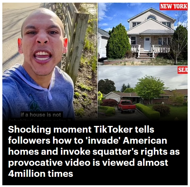 洛杉矶华人资讯网3月24日综合DailyMail、纽约邮报报道 一名在TikTok上拥有50多万粉丝的网红近日发布视频,传授粉丝如何“占据”无人居住的房屋,并声称可以利用相关权利使其难以被赶走。