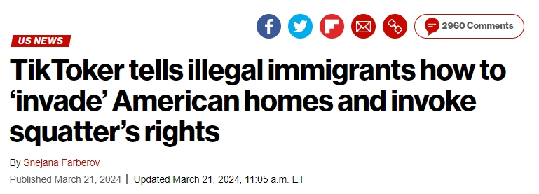 还有人提出质疑:“为什么我们国家甚至有法律允许无证移民进入并夺取他们不拥有的房屋? 我们的国家被占领了。而我们的政府却任由这种情况发生。”