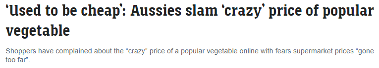 就在最近,超市里一种人们常吃的蔬菜的价格,引起了澳洲人民的强烈不满。