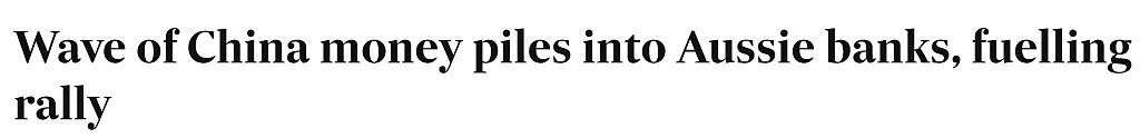 有人指出,本轮澳股大涨是因为亚洲投资者的需求增加了,这些投资者正逃离遭受重创的中国市场,在澳洲银行寻求庇护。