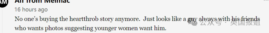 “没人再相信所谓‘万人迷’的故事了。他看起来像一个总是与朋友在一起的男人,需要一些照片来暗示年轻女人想要和他交往。”