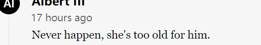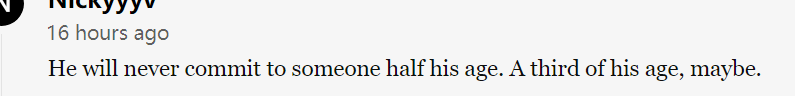 “他永远不会对年龄是自己一半的女性许下承诺,可能得是他1/3的年龄才行吧。”