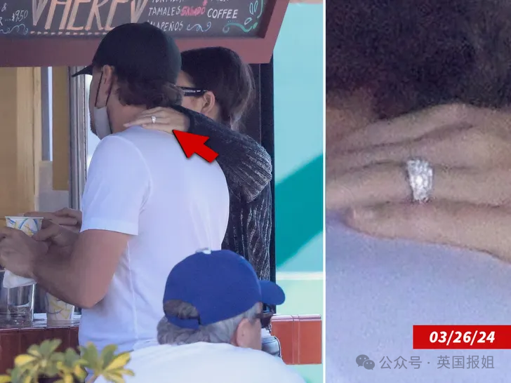 在柜台点餐时,VC用手臂亲密搂住小李子的肩膀。最重要的是,照片捕捉到的两人互动中,VC左手无名指戴上了戒指。两人订婚的传言由此而来。