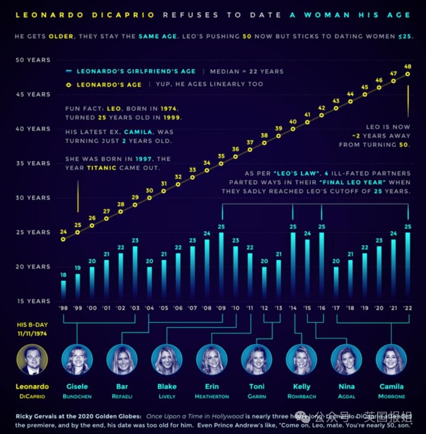网友们的吐槽不无道理,毕竟众所周知,小李子的每一段恋情几乎都会在女方满26岁之前分开。