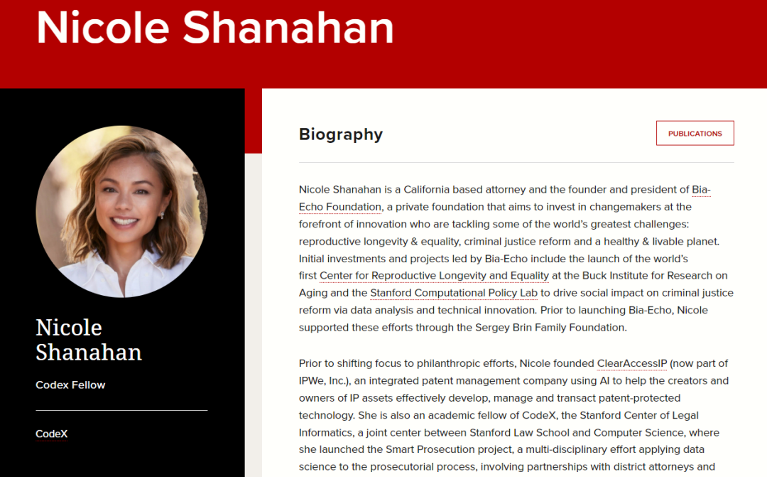 Nicole 还获得了 CALI 未来卓越奖和圣克拉拉法学院年轻校友新星奖。她被评为 50 名女性科技医疗保健影响者和长寿领袖,以及《旧金山商业时报》的 40 Under 40 领袖,因为她是人工智能和诉诸司法领域道德前沿组织的开拓者。